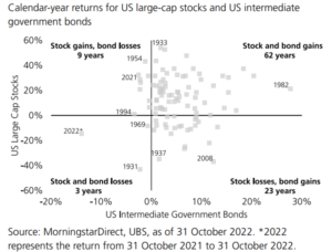 Iako je činjenica da su i dionice i obveznice doživjele pad ove godine, diverzifikacija izloženosti tim dvjema klasama ipak je ublažila veće gubitake. Naime, u 2022. naglo rastuće stope pogodile su sve klase imovine, pri čemu su državne obveznice s dugim rokom dospijeća pretrpjele najveće gubitke (veće i od dionica). Ipak, diverzifikacija portfelja na način da se investitori „sklone“ u kratkoročne obveznice svakako je pomogla ublažiti gubitke.